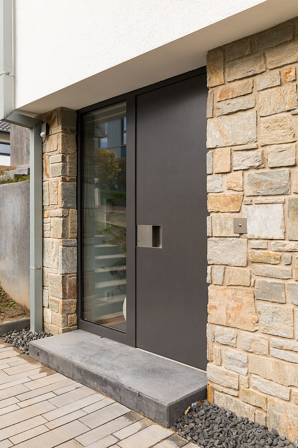 Fußmatten im Eingangsbereich sind besonders praktisch zum Abfangen von Schmutz, bevor dieser mit hineingetragen wird. Eingelassen in eine Betonplatte verrutscht sie nicht und bleibt immer an Ort und Stelle.