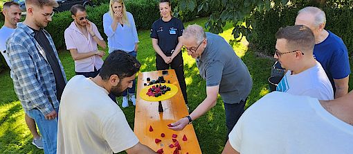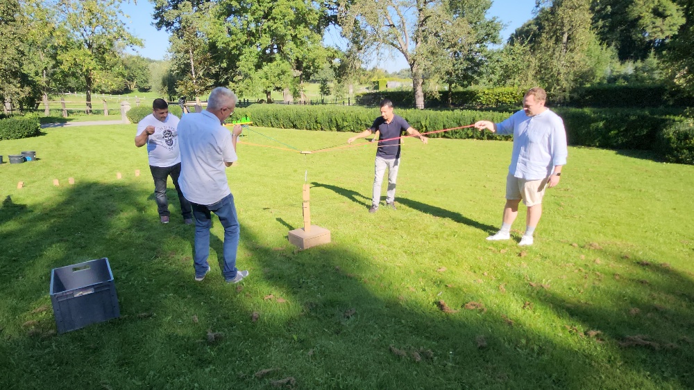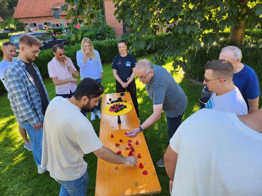 Zum warm werden sind wir in Teams in ganz vielen Challenges gegeneinander angetreten und durften ganz viele Holzklötzchen sammeln. Neben Geschicklichkeit und Schnelligkeit waren Zusammenarbeit, Spaß und viel quatschen gefordert.
