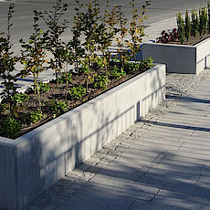 Unsere Elemente können mit gestalterischen Optionen zusätzlich optisch verschönert werden: So lassen sich z.B. Beleuchtungen in den Elementen unterbringen. Zudem können wir auf Wunsch unsere Elemente mit bewässerten Pflanzenöffnungen ausstatten.