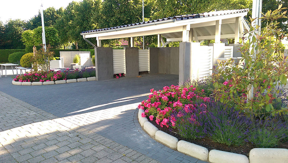 Ob Auf- und Zufahrten abgestützt, Aus- und Einbuchtungen eingefasst oder runde Pflanzanlagen ausgeführt werden sollen – mit Zirkant- Winkelstützen können individuelle Planungen maßgenau und kostengünstig umgesetzt werden. Die sandgestrahlte Oberfläche und die umfangreiche Auswahl an Farben macht den Zirkant zu einem attraktiven Gestaltungselement.
